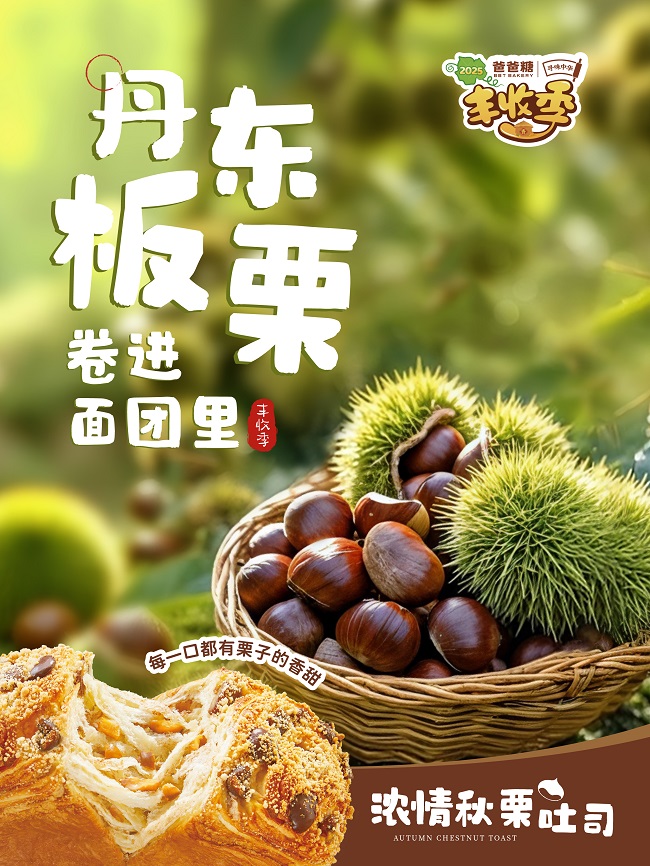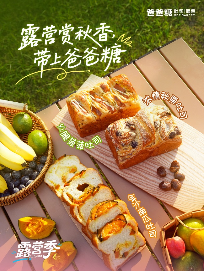 在深入辽宁丹东、云南昆明、山东等地后,爸爸糖将极具秋日代表性的板栗、鸡枞菌、南瓜、菠菜等精选食材融入产品研发。该品牌的丰收季系列吐司的设计,凸显了对本土风味的深刻理解。