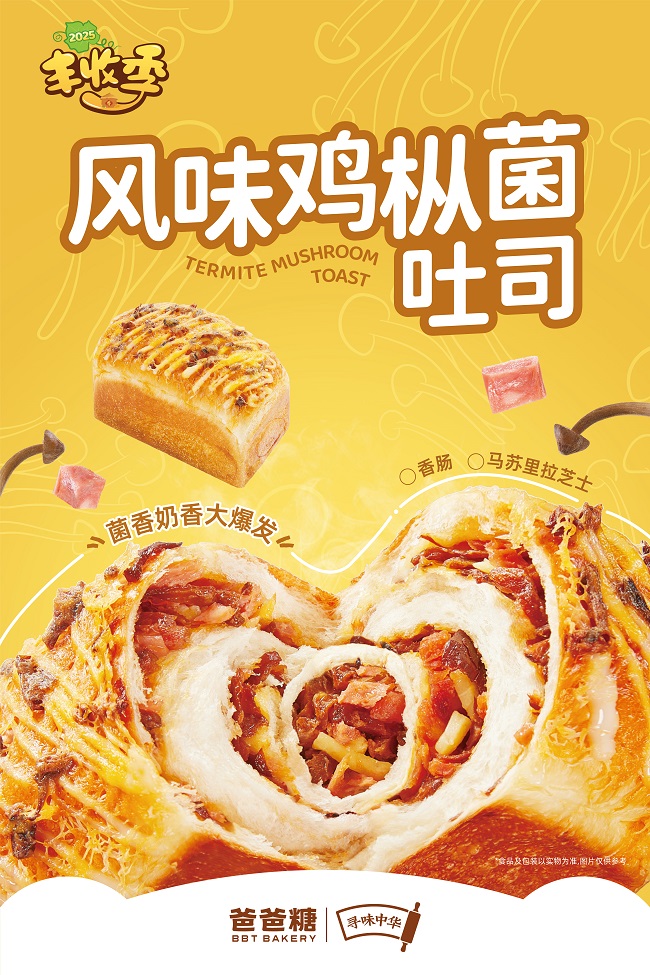 近日,烘焙市场的“秋季战役”已步入收官阶段。回顾过去两个月,知名品牌爸爸糖吐司面包(下文简称爸爸糖)于9月初推出的“寻味中华·丰收季”系列新品,无疑是亮眼的现象级产品之一。自9月10日上市以来持续热销,其中火腿菠菠吐司、浓情秋栗吐司、金沙南瓜吐司、风味鸡枞菌吐司等多款新品在部分门店一度脱销。这场以“香”为主题、以本土甄选食材为载体的产品实践,不仅赢得了市场积极反馈,更以其成熟的IP化运营模式,为烘焙行业提供了一个可供深度借鉴的营销范本。